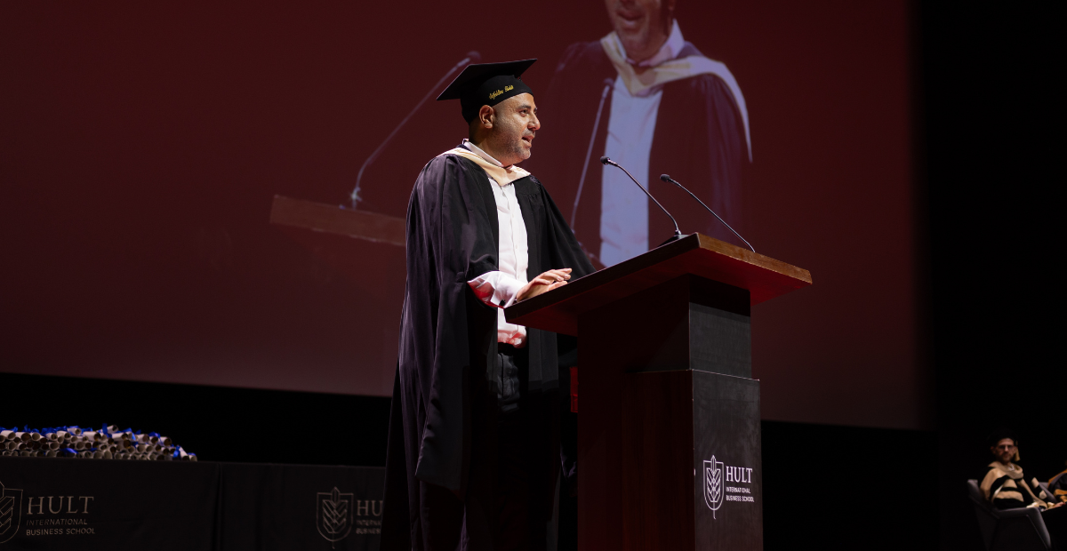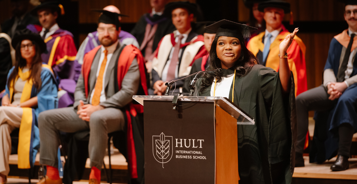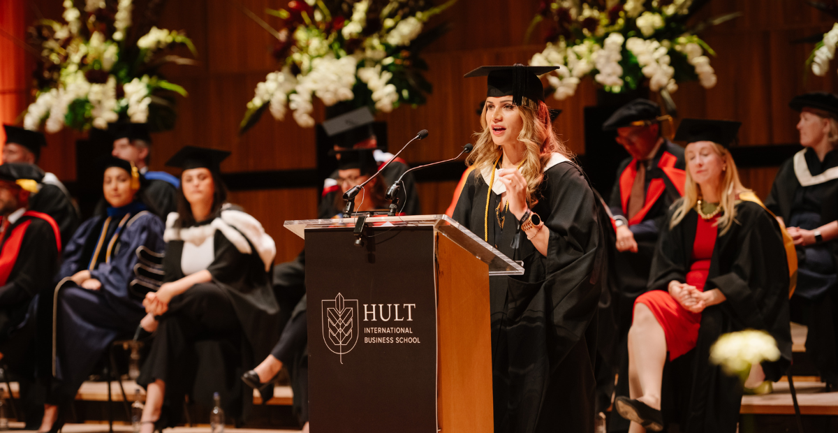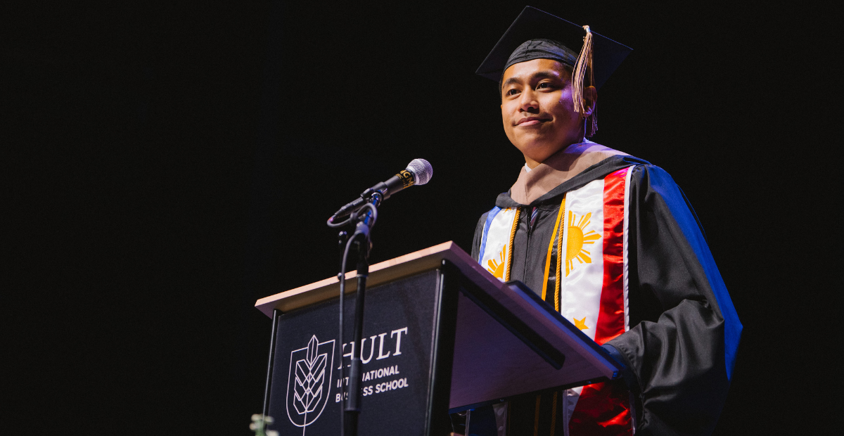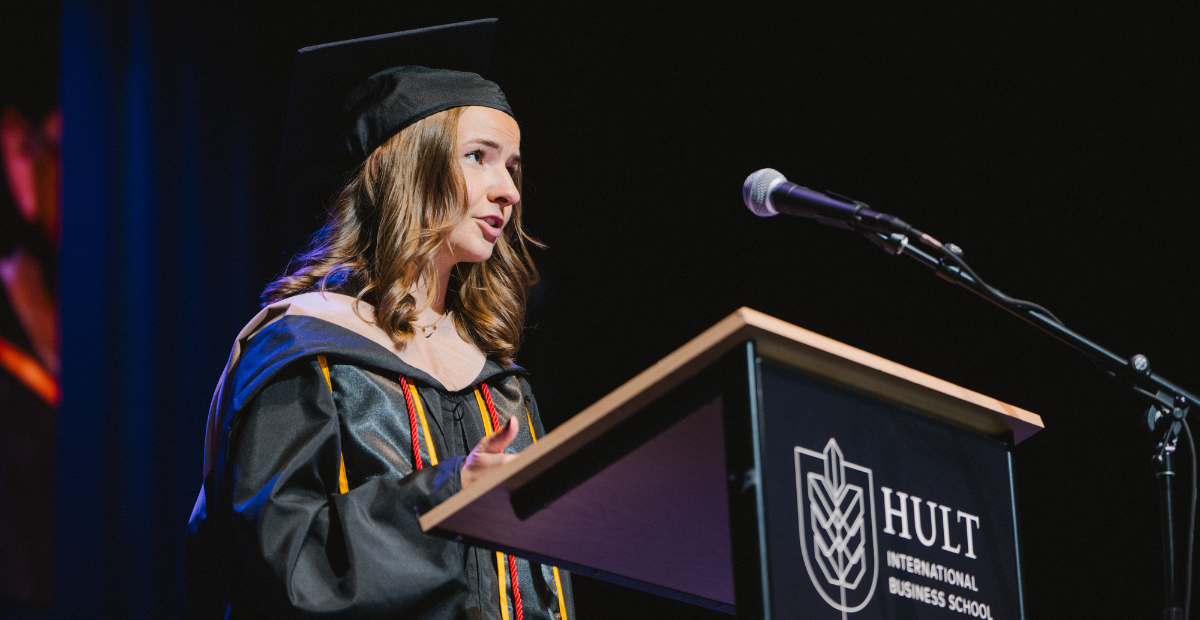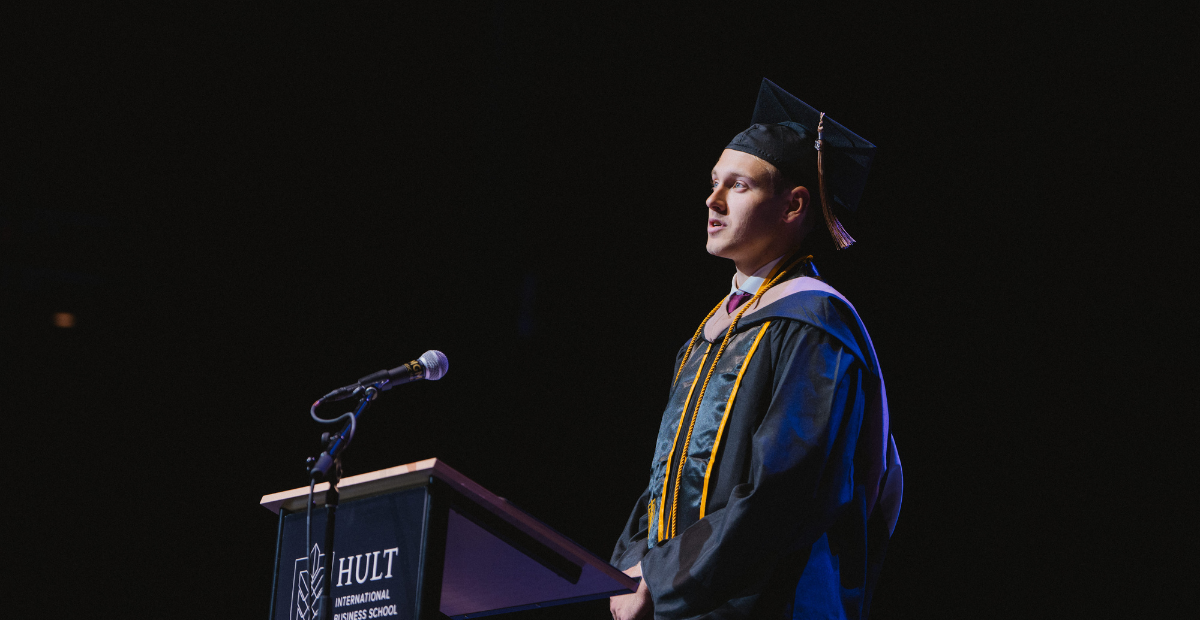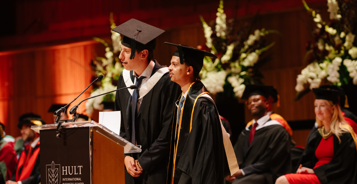 A joint speech about the forces that shaped their Hult journey—passion and perspective.