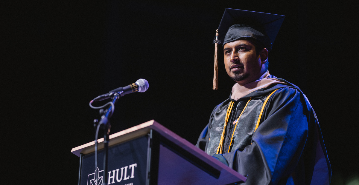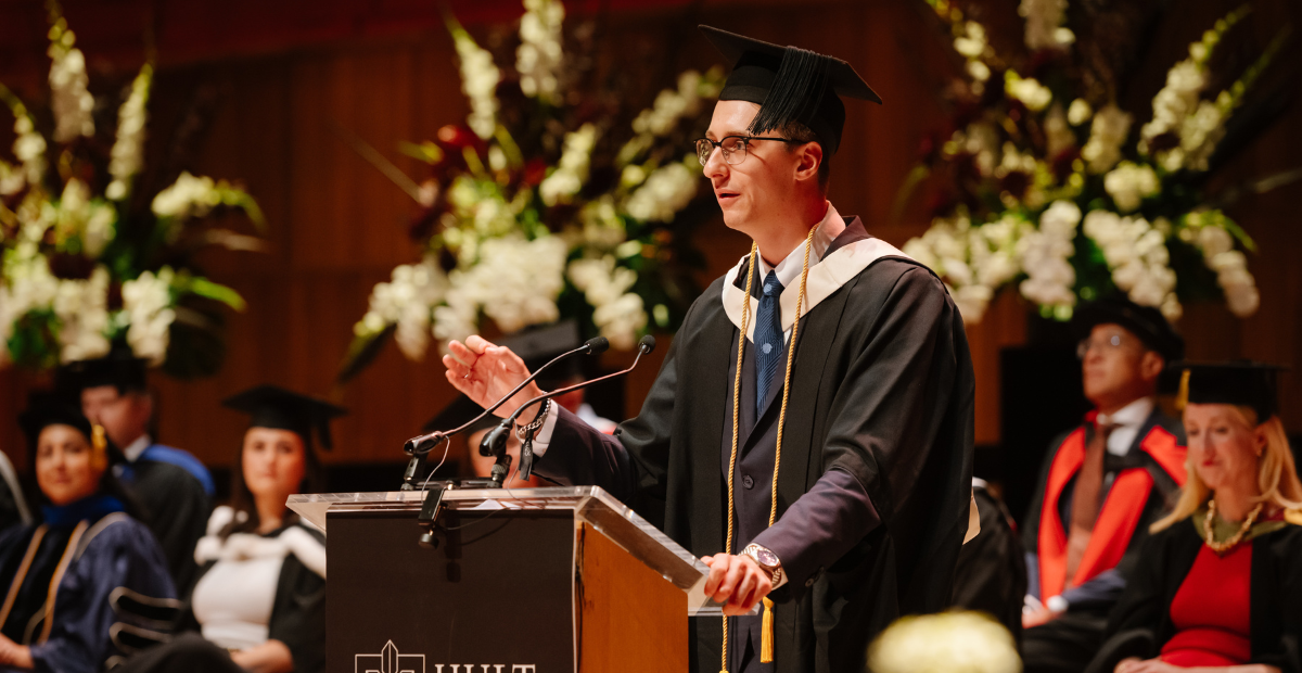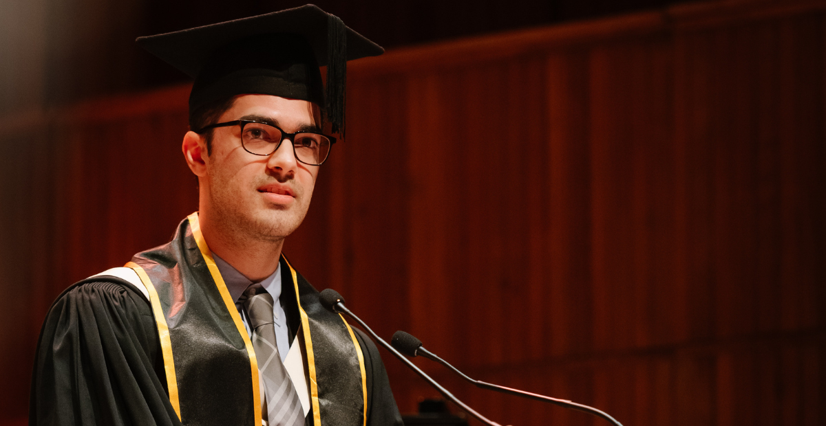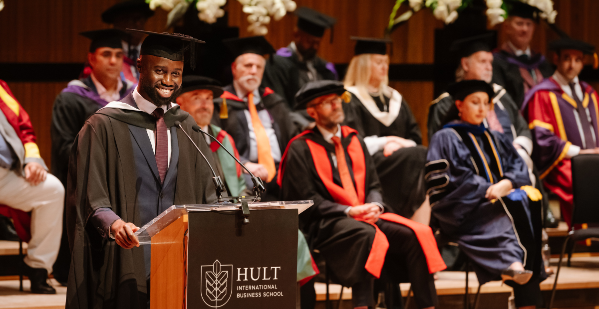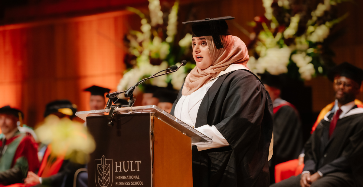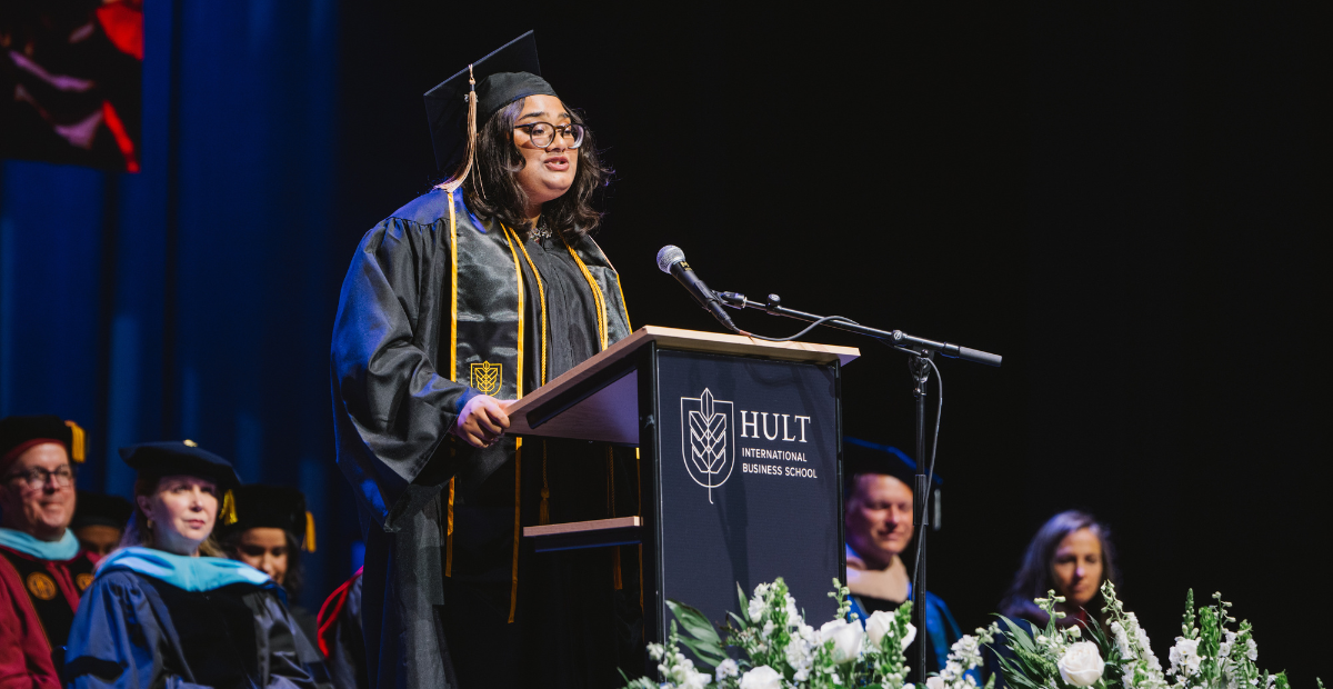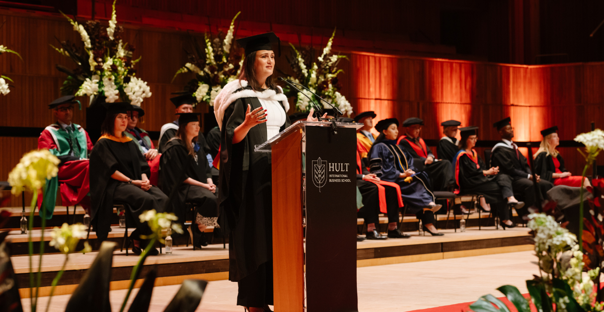 A joint speech about the forces that shaped their Hult journey—passion and perspective.