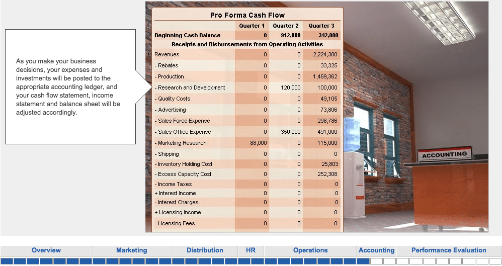 “Teams of 6 students, all from different countries and regions, were tasked with running a company from ground zero. We competed with 7 other teams for 8 consecutive quarters in the international PC market.